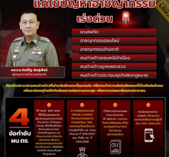 ผบ.ตร. กำชับเด็ดขาด แก้ไขปัญหาอาชญกรรม เร่งด่วน🚨