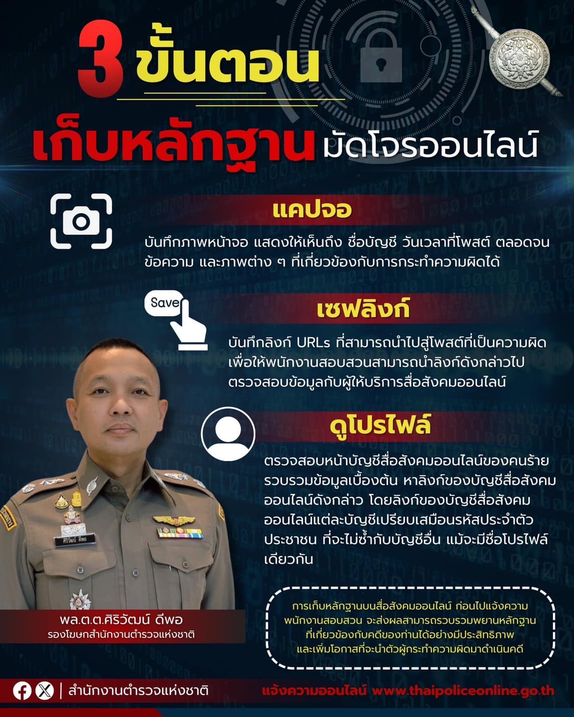 ผบ.ตร. กำชับ ตามที่ รัฐบาล และ ตร. มีนโยบายเร่งด่วนในการแก้ไขปัญหายาเสพติด ปัญหาอาชญากรรมออนไลน์ อาช