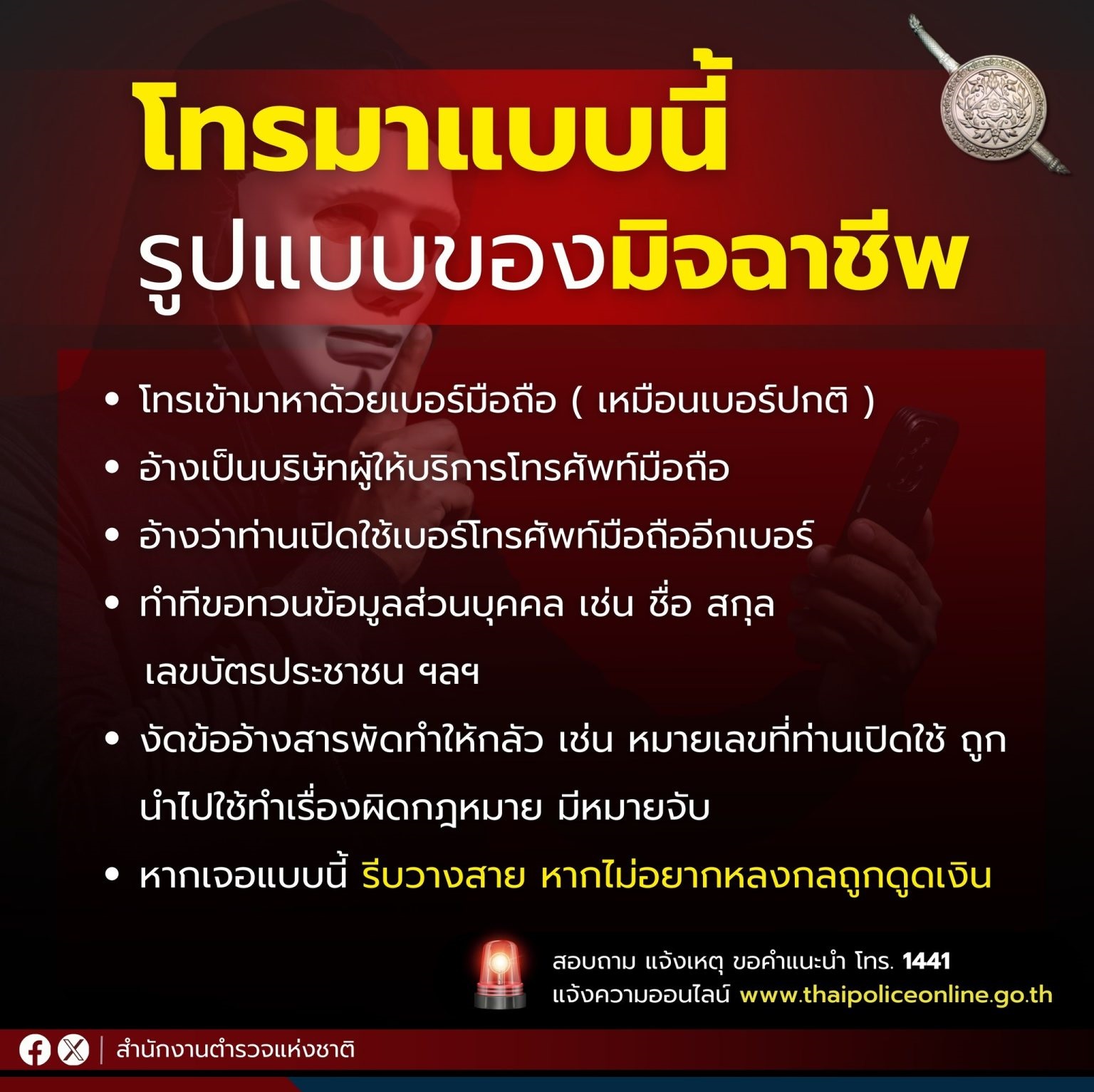 หากท่านได้รับโทรศัพท์ แล้วโทรมาแบบนี้ … รีบวางสาย เพราะเป็นรูปแบบของมิจฉาชีพ โทรเข้ามาหาด้วยเบอร์ม