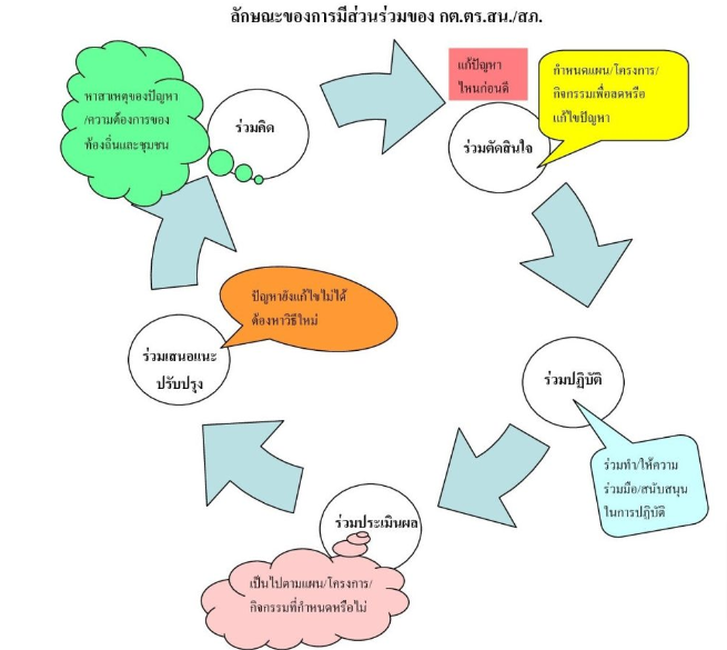 1) มีส่วนร่วมในการคิด ศึกษาและค้นคว้าหาสภาพและสาเหตุของปัญหาตลอดจนความต้องการของท้องถิ่นและชุมชน